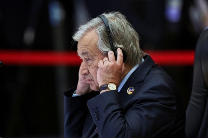 NEW YORK (Reuters) – United Nations Secretary-General Antonio Guterres warned on Sunday that any attacks against peacekeepers “may constitute a war crime,” his spokesperson said after Israeli tanks burst through the gates of a peacekeeping base in southern Lebanon.