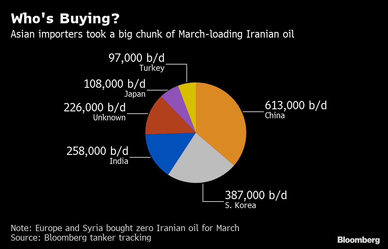 Trump withdrew from the 2015 nuclear deal between Iran and world powers almost a year ago and revived a range of sanctions against Iran and any countries doing business with the Islamic Republic. But he and his top advisers have been wary of disrupting energy markets and spurring a hike in US pump prices. For that reason, they allowed waivers for Iran’s biggest buyers of crude, including China, India and Turkey.