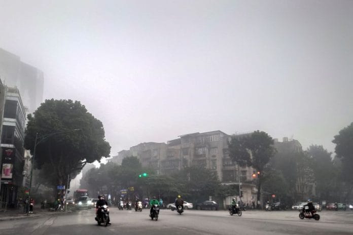 HANOI (Reuters) – The streets of Vietnam’s capital city Hanoi were enveloped in thick smog on Monday which dramatically reduced visibility due to air pollution caused by high levels of particulates from vehicle emissions and construction-linked fine dust.