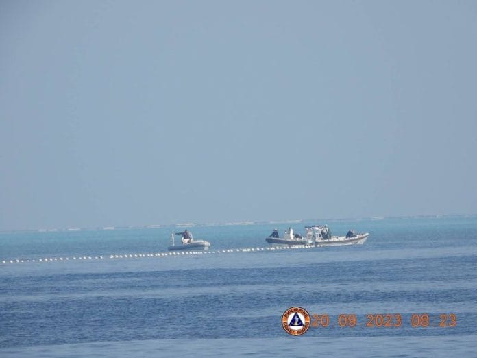 On Monday, the Philippine executed a “special operation” that entailed the coastguard entering the shoal on a small motor boat posing as fishermen, before diving down with snorkels and masks to cut the barrier and remove its anchor.