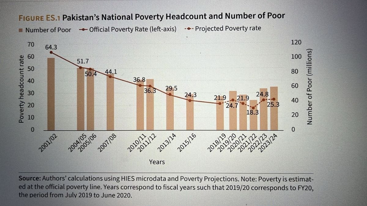 According to the report titled ‘Reclaiming Momentum Towards Poverty—Pakistan’s Poverty, and Resilience Assessment‘ released Tuesday, Pakistan had dramatically reduced poverty from 64.3 percent in 2001 to 21.9 percent in 2018—declining by 3 percentage points annually until 2015, before slowing to less than 1 percentage point per year.
