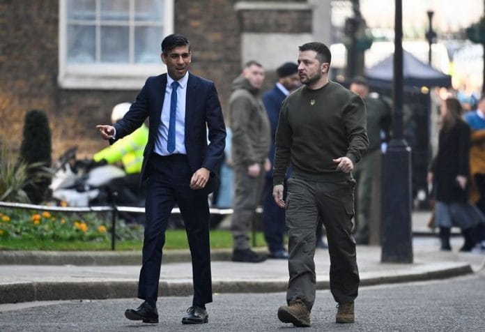 The British government said Zelenskiy had arrived in Britain and would meet Sunak at his Chequers country residence.