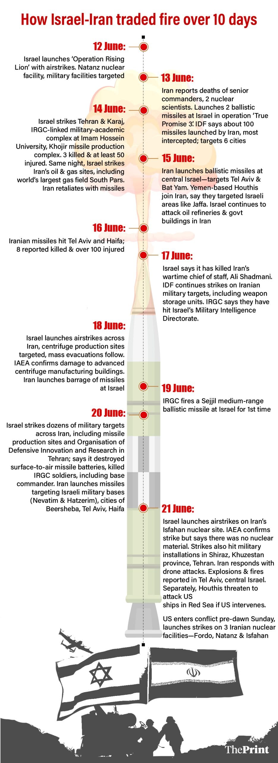 Israel and Iran entered into open conflict on 12-13 June, after years of simmering tensions, with the first blow struck by Israel Defense Forces (IDF) which initiated “Operation Rising Lion” and launched “pre-emptive strikes” against Iranian nuclear sites, its military leadership and nuclear scientists. Iran responded with missile strikes of its own.