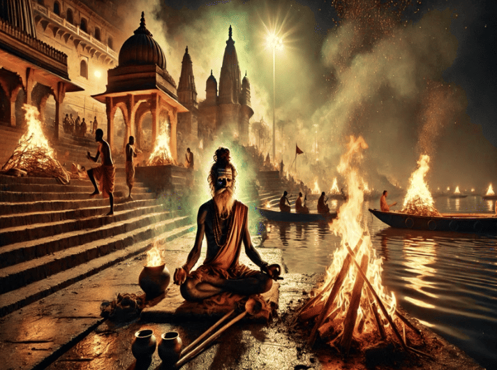 By mid-February, many Aghoris and tantric from the Kumbh Mela migrate from Prayagraj to Varanasi, setting up temporary camps along the Ganges. At night, the sight is hauntingly beautiful, especially near the two ghats used for cremations. These ascetics, covered in ashes, walk unperturbed among funeral pyres, completely at ease with death. Their behaviour, often erratic and challenging conventional norms, pushes the boundaries of societal expectations. Yet, their comfort in the presence of mortality is what fascinates me most.