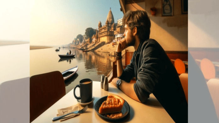As I wandered past the riverbanks, I finally settled into a café—one that claims to be India’s first pizzeria. I ordered my usual: a black coffee and a fresh apple pie. As I took a slow sip, I felt an overwhelming sense of emptiness. The scent of incense and wood smoke, the distant echoes of temple bells, the rhythm of oars slicing through the river—these once-familiar sensory experiences felt devoid of meaning. I had seen it all before, and yet, I was no closer to understanding anything.