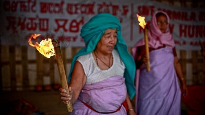 The Meira Paibis, literally translated as women torch bearers in Manipuri, on the other hand, is a Manipur women’s protest movement group that fights against the state for their failure to provide redressal for human rights violations and crimes against women, among others.